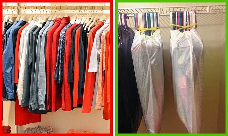 4. Pendurar roupas lado a lado pode ajudar a economizar espaço
