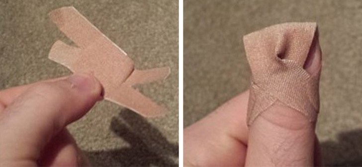 7. Ao usar um band-aid, corte fendas nas laterais e dobre-as de modo a envolver a ferida; isso evitará que caia