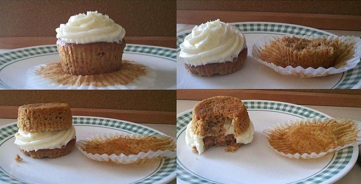 3. Ao comer um cupcake, parta metade do bolo e coloque em cima, deixando menos confuso de comer