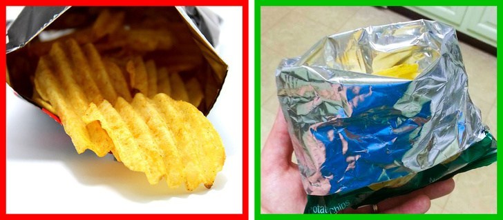 2. Dobre um saco de batatas fritas para fazer uma pequena tigela que fique mais fácil de alcançar