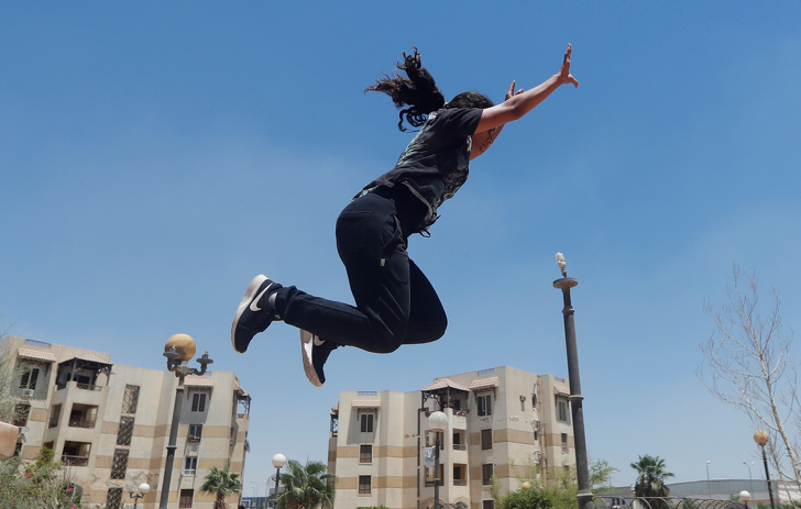 11. Una joven egipcia desafía a las normas locales haciendo parkour