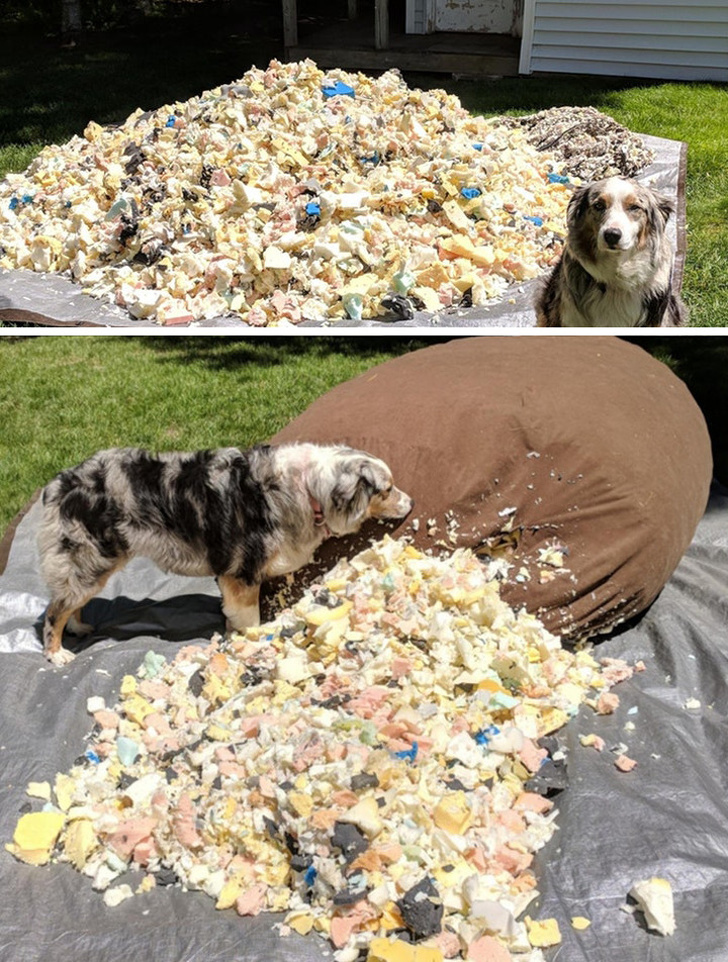 4. A este perro le encanta romper juguetes de peluche y sacarles el relleno. Para su cumpleaños, su dueño le regaló un gran sofá
