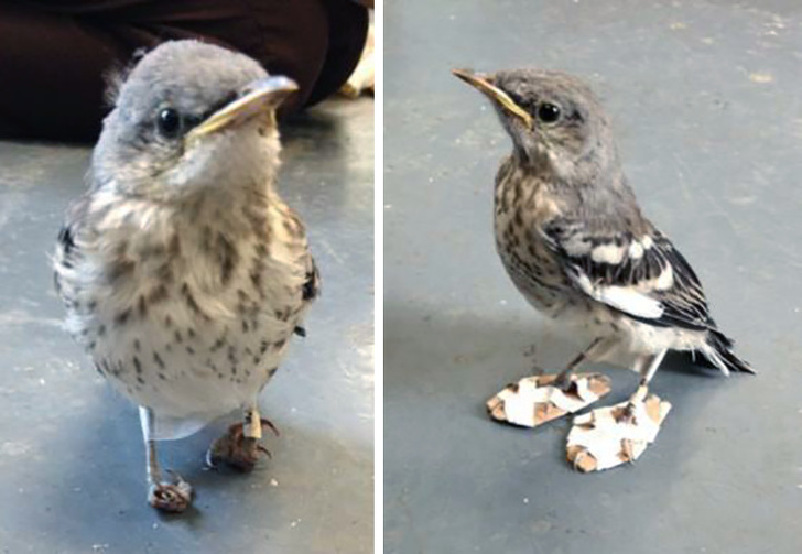 17. En un centro de protección de la vida silvestre, le hicieron unas “pantuflas” a un pájaro para que pudiera caminar nuevamente