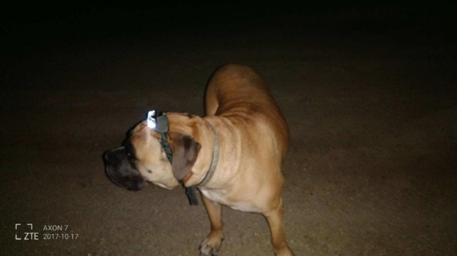 “My mom’s 155-lb Mastiff is afraid of the dark. She managed to cope with this problem.”