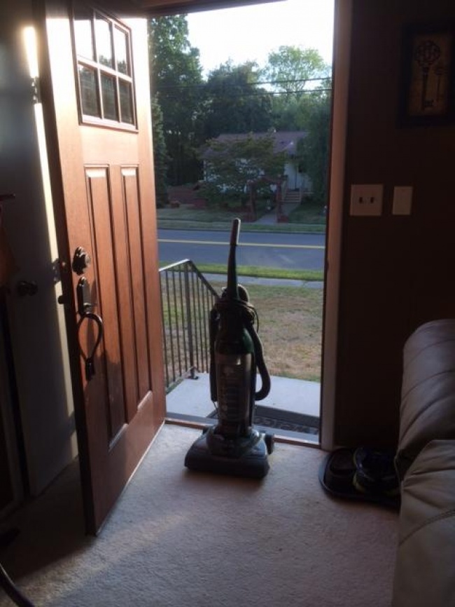 “Here’s our smart solution for keeping our dog inside while the door is open.”