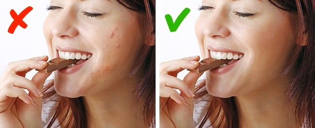 Durante un mes, científicos dieron a un grupo de personas barritas que contenían gran cantidad de chocolate. Después llegaron a la conclusión de que el chocolate no influye en la aparición del acné.