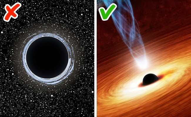 El agujero negro se parece a una bola. Como tal, no tiene un agujero que arrastra. Este es solamente un objeto con una gran gravedad, que atrae todo lo que se encuentre cerca de él.
