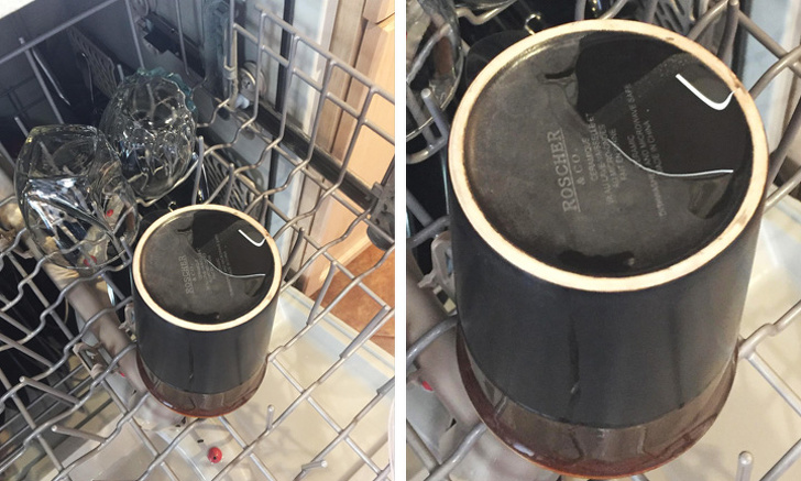 6. Así se ve una jarra de fondo cóncavo después de secarla en un lavavajillas