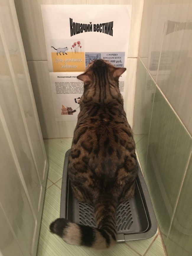 13. El gatito también necesita leer noticias gatunas mientras está en el baño