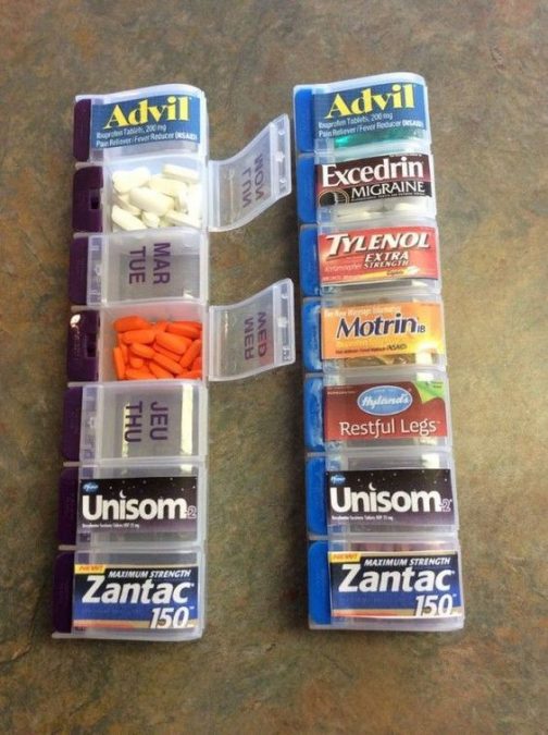 Rather than bringing a bunch of pill bottles, pour whatever you think you’ll need into clearly labeled pill containers and rest assured that you’ll be totally covered if anyone needs something.