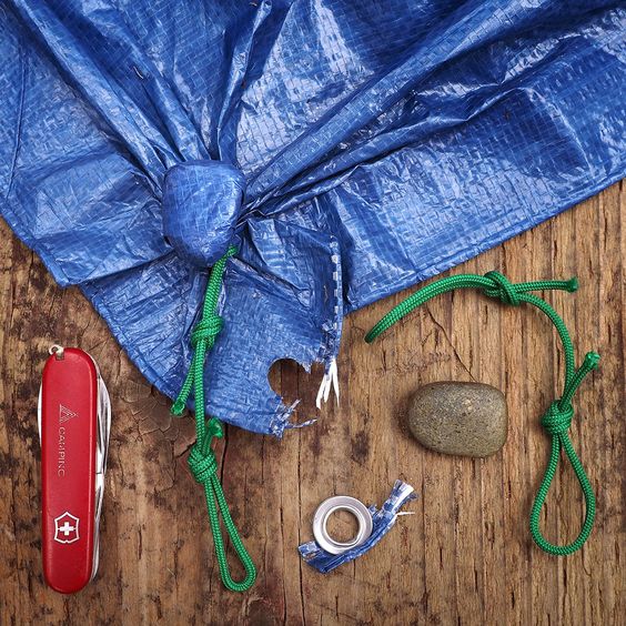 Grab a small stone from nearby and use it to create a makeshift anchor point with some lanyard or a bungee cord.