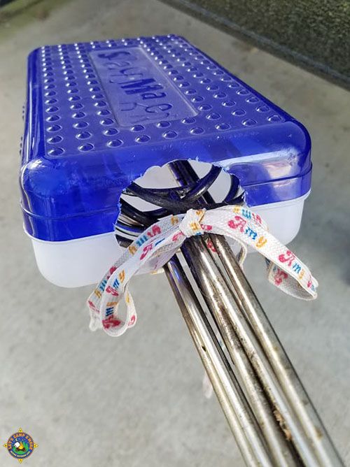 A cheap pencil box can be repurposed into a great storage space for your campfire forks.
