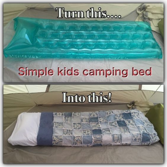 A pool raft makes a comfy camping mattress in a pinch. It can also be rolled up for easy storage in the car on your way there and back.