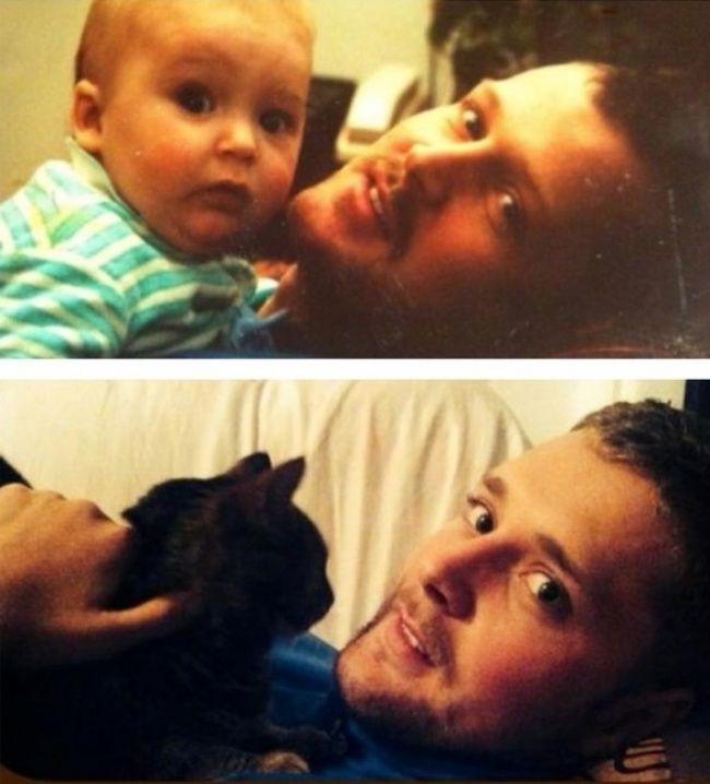 10 – “Meu pai e eu em 1991, e meu gato e eu em 2013”