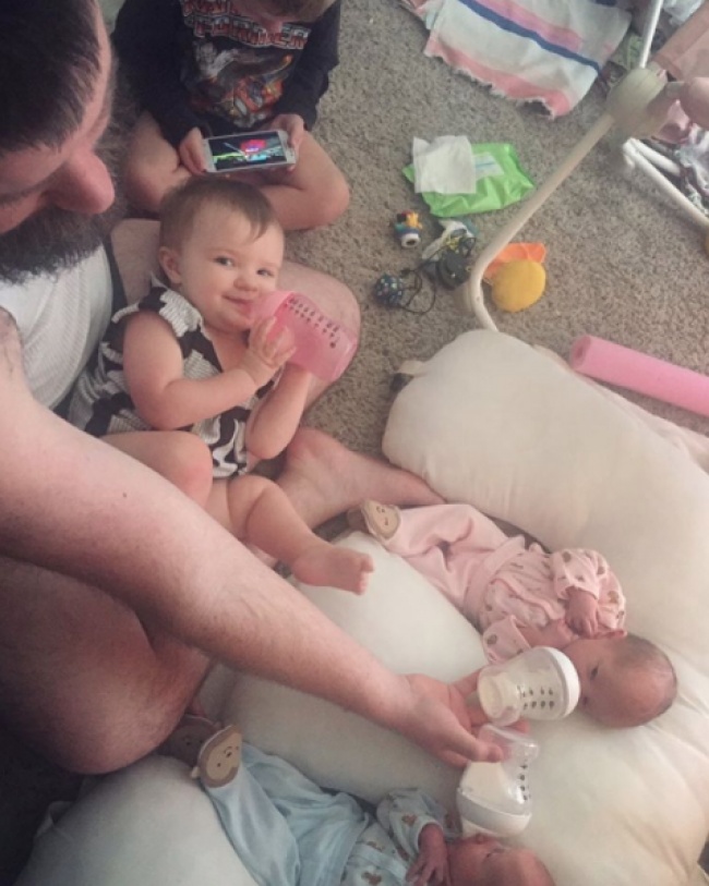Combo! Or how to feed three kids at once while Mom’s asleep.