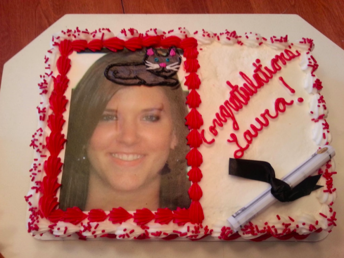 The cake should have had a cap on top of her head.