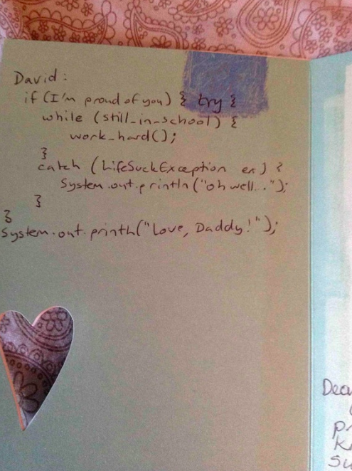 Thanks, Dad. I thought graduation meant no more coding problems, though.