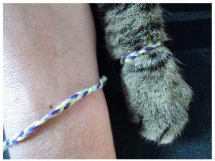 “Hice estos ’brazaletes de la amistad’ para mi gato y para mí”