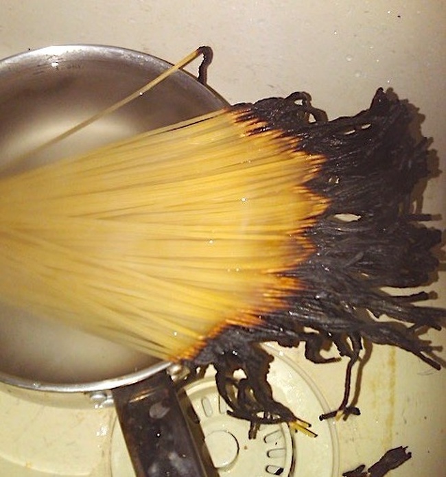 14. “Mi compañero de cuarto cocinó fideos con queso y derritió la olla. ¿Cómo lo hizo? No lo sé, realmente”