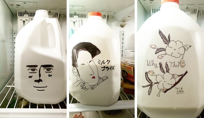 17. “Mi compañero de cuarto dibuja sobre los envases de leche”