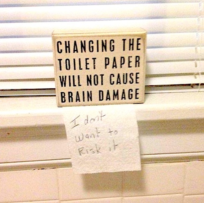 “- Reemplazar el papel higiénico no causa daño cerebral.