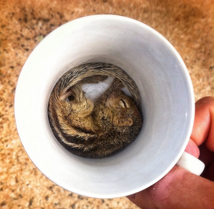 5. ¡Mientras la ardilla está durmiendo tan tranquila en la taza, nosotros estamos fascinados mirándola!