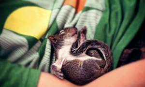 16. Ardilla bebé acurrucada, durmiendo boca arriba