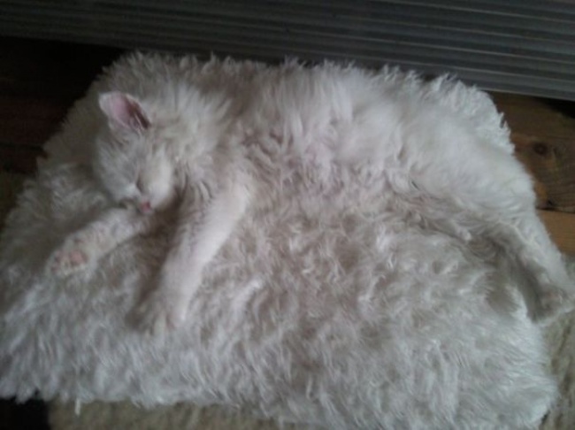 Qué hermosas y blancas mantas las de esta cama… un momento, no son mantas, es Copo de nieve, el gato de la casa.