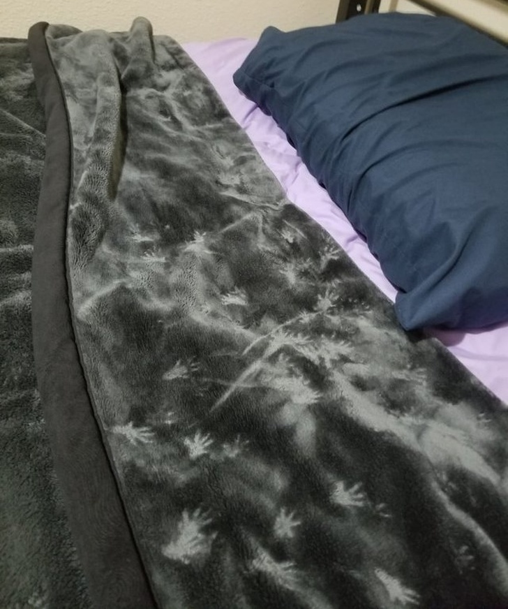“Mi amigo estaba por ir a dormir, pero las huellas de las patas de alguien sobre su manta le quitaron el sueño completamente”