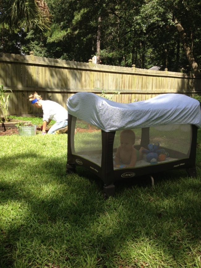 Cover the baby cot with a sheet for your kid to avoid heatstroke and bug bites.