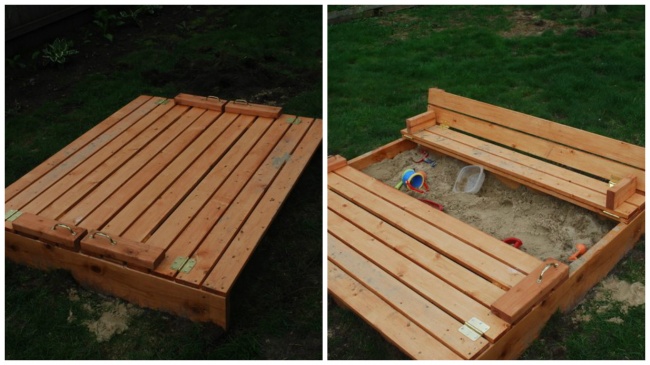 Your kids can play in this sandbox and then close it to sit and sunbathe on it.