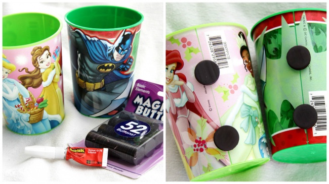 If your kids can’t reach the high kitchen shelves, use some magnets and glue them to your kids’ cups. They won’t break this way, and you can hang them on any metallic surface — for example, the fridge.