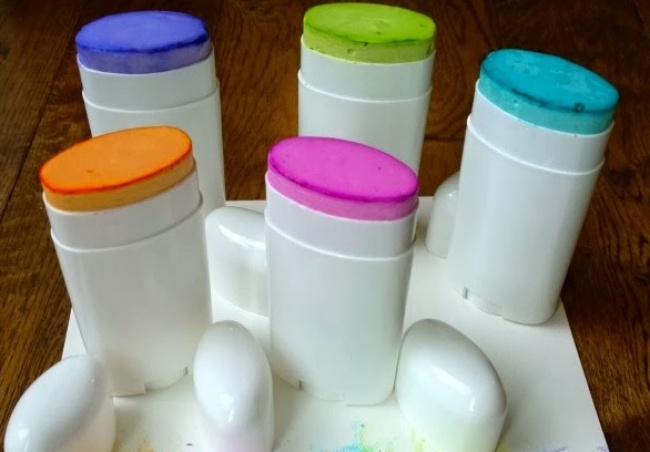 Colored chalks stain both hands and clothes. To avoid this, make a chalk yourself and put it into an empty deodorant stick.