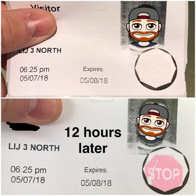 13 – Esse crachá de visitante no hospital contém uma tinta especial. 12 horas após a emissão, um sinal vermelho começa a aparecer, invalidando a permanência