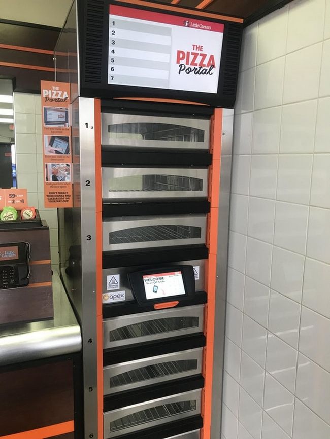 2 – Essa pizzaria oferece pedidos online que podem ser retirados em um “portal de pizza” com um código de confirmação e nenhuma interação entre atendentes e clientes