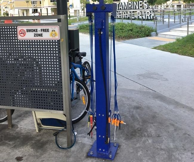 6 – Estacionamento de bicicletas que possui também ferramentas para soluções rápidas