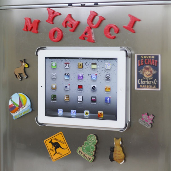 Tenha seu tablet sempre perto. Coloque na porta da geladeira para escutar música ou olhar novas receitas.