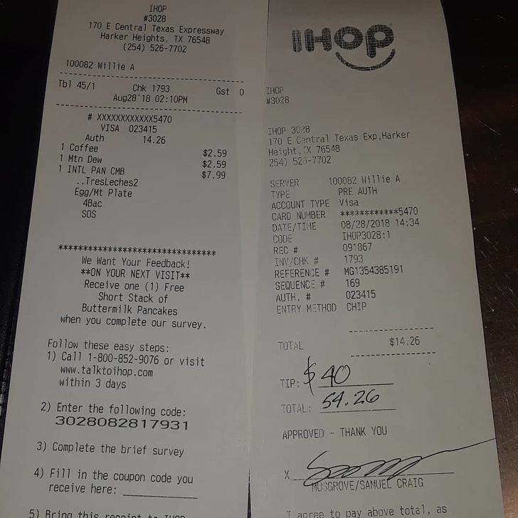 12. Los camareros les preguntan a las personas si todo está bien con sus comidas constantemente