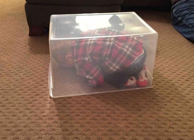 9 – Até uma caixa de brinquedos pode servir de esconderijo
