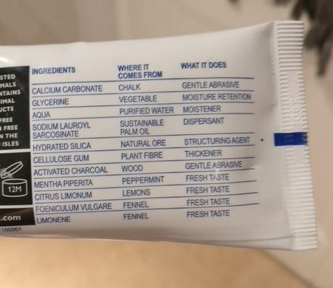 13 – Um creme dental que descreve cada um dos seus ingredientes e sua finalidade