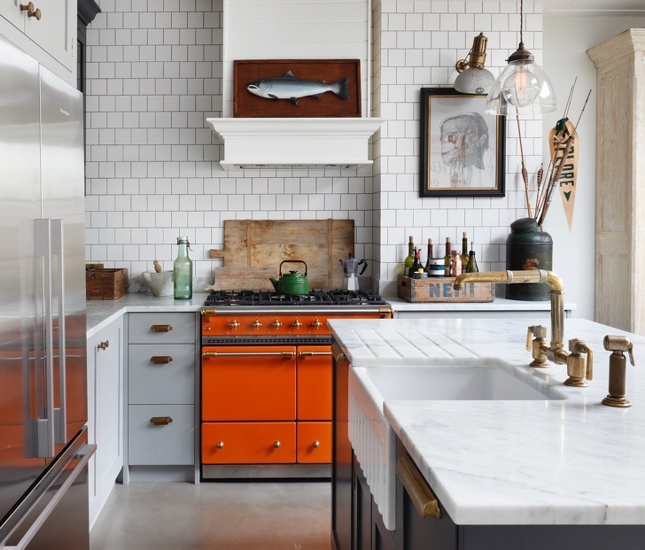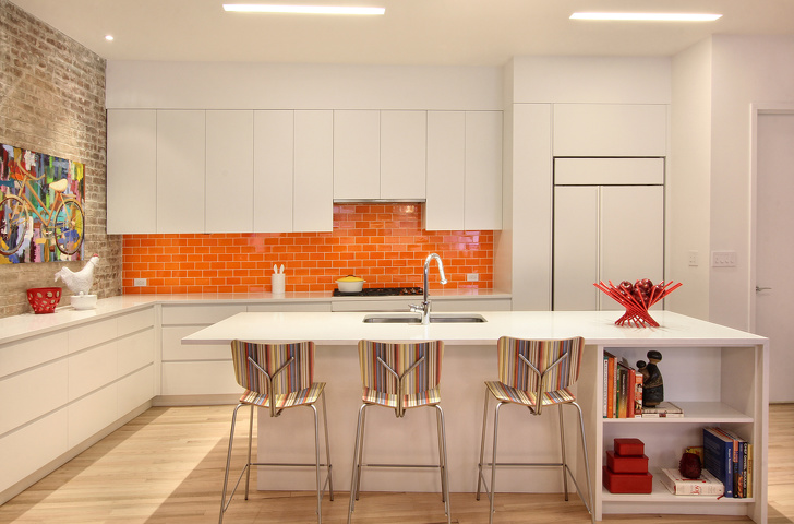 El alicatado naranja a menudo se utiliza como el principal color de acento en las cocinas modernas. Y por una buena razón, ya que literalmente respira vida y energía en el entorno beige aburrido.