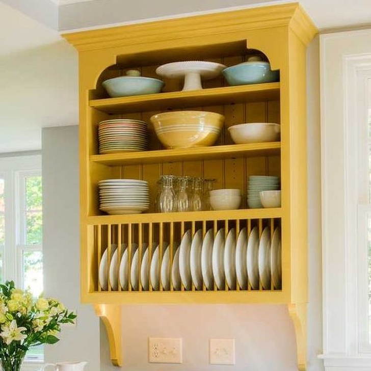 Un armario abierto para vajilla no solo es cómodo, además es muy original si es amarillo.