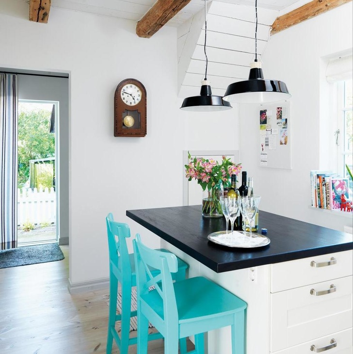 El color turquesa de las sillas no solo es refrescante, sino que también se combina perfectamente con los colores oscuros y claros.