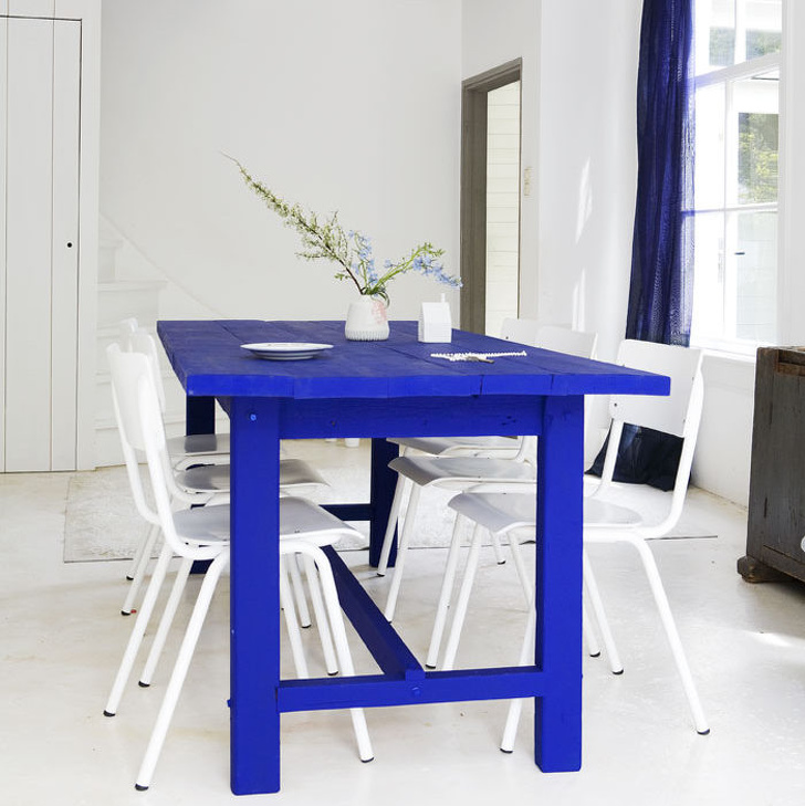 El ultramarino intenso le da a la cocina blanca un ambiente de verano en la costa.