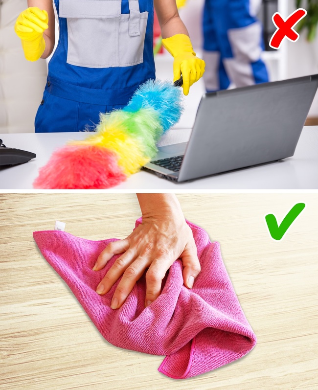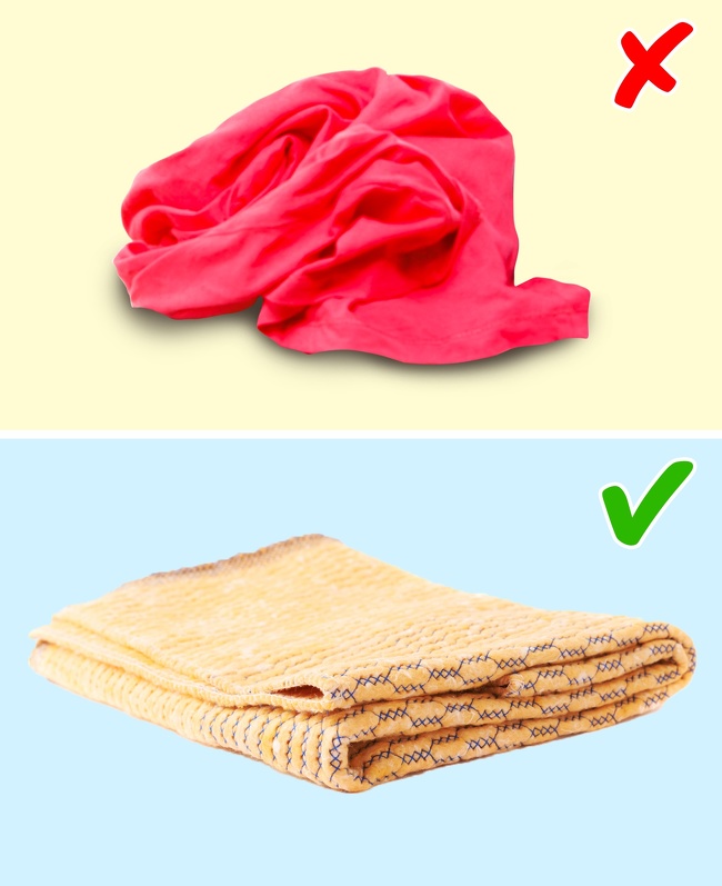 Não reutilize roupas velhas e outros panos velhos para remover a poeira. Para fazer isso, é melhor usar flanelas especiais; elas são muito mais macias, não soltam fios nem fiapos e não se desfazem.