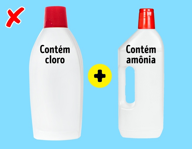 É especialmente prejudicial misturar alvejante com álcool, vinagre com amônia, bem como vários produtos para desobstruir os ralos e tubulações.
