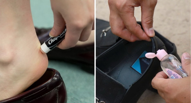 Para evitar machucados no calcanhar e nos dedos dos pés ao usar um sapato novo, use um desodorante seco (roll on), óleo de bebê, vaselina ou manteiga de cacau. Isso irá reduzir a fricção e vai proteger as áreas abertas da pele.