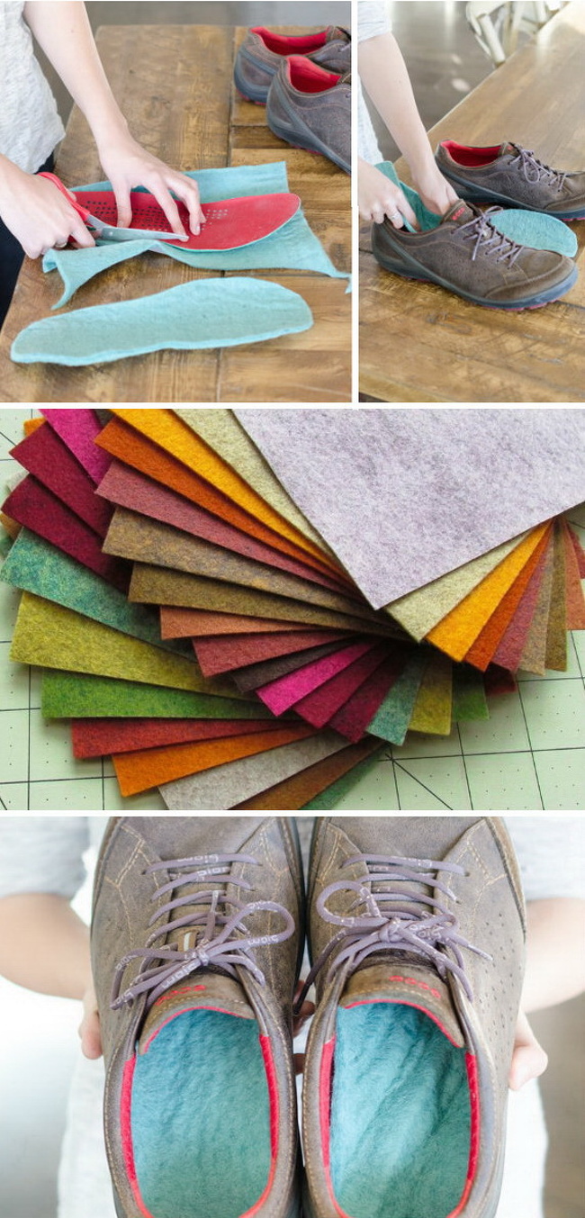 Com as palmilhas de feltro natural você vai se sentir mais cômodo quando começar a chover. Além disso, o tecido mantém o calor. O ideal é fazer mais de um par, para não correr o risco de ficar sem.