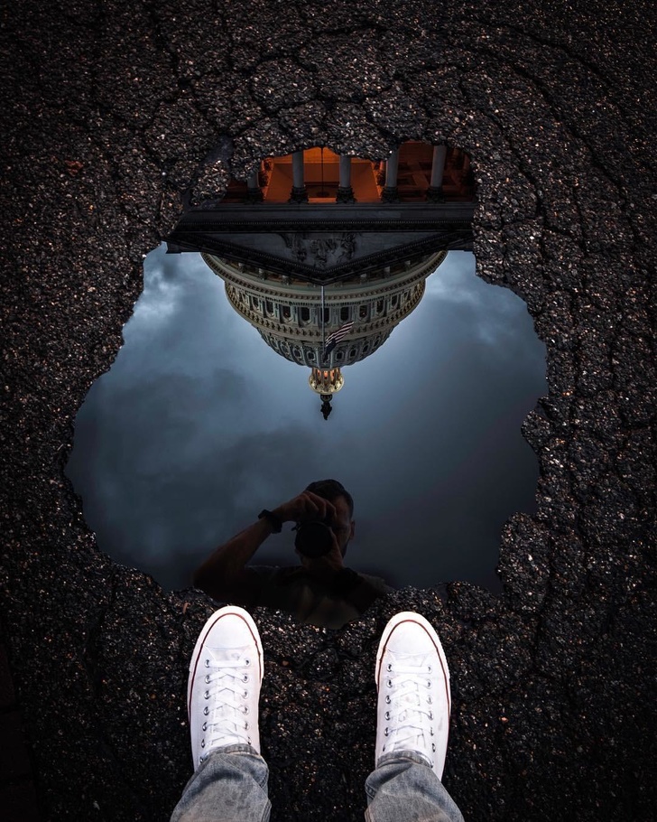 Este charco parece un portal a otro mundo, desde el que te saca una foto un extraño