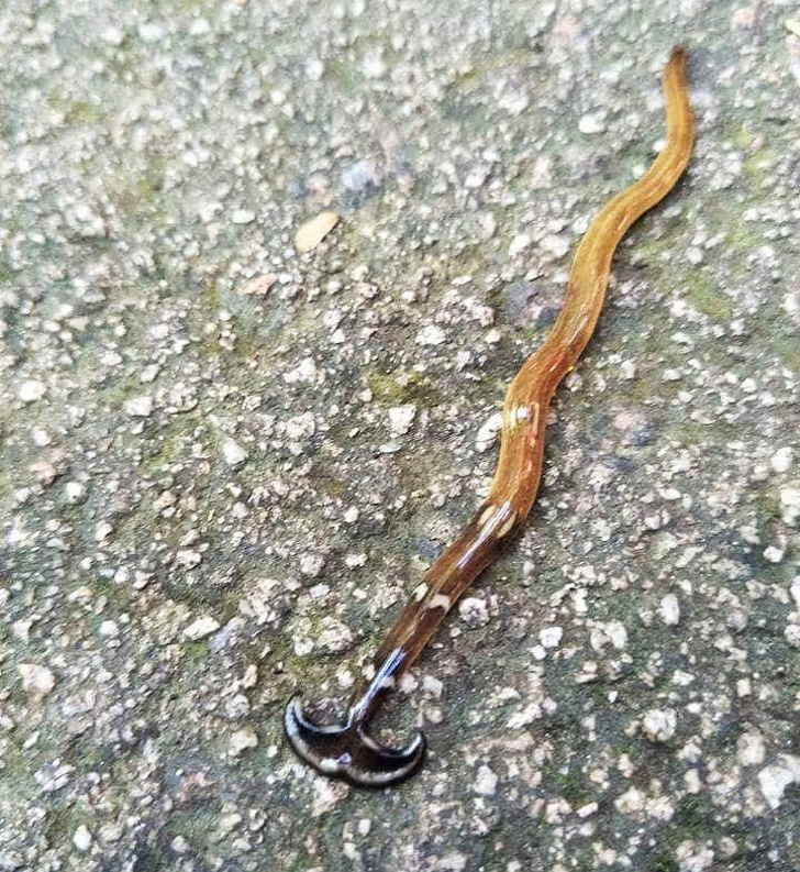 Es un gusano cabeza de martillo: un gran gusano ciliado con una forma inusual de la cabeza. Por cierto, el gusano se alimenta de lombrices de tierra.